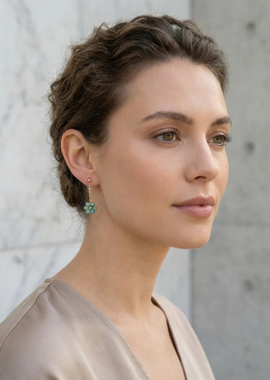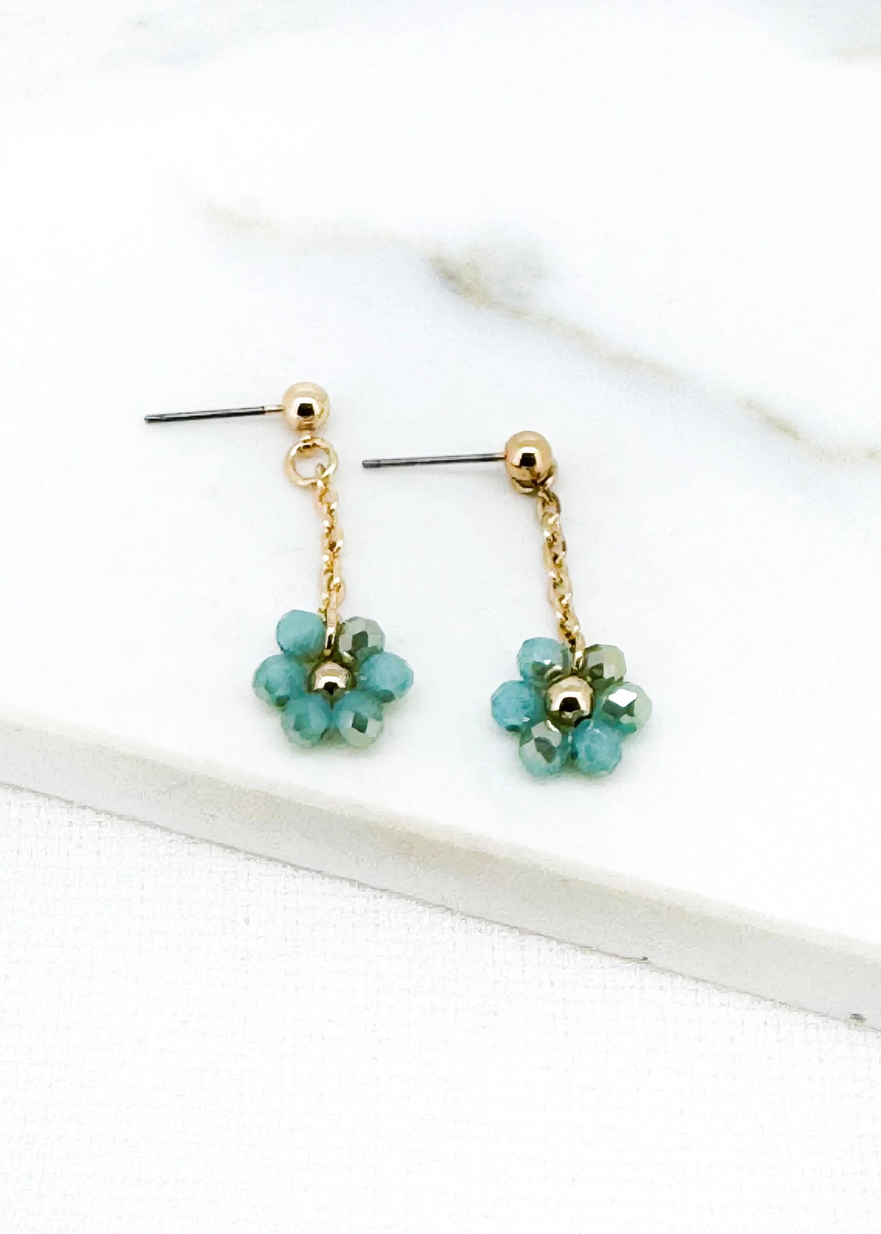 Gold Dropper Earring with Turquoise Crystal Daisy Design