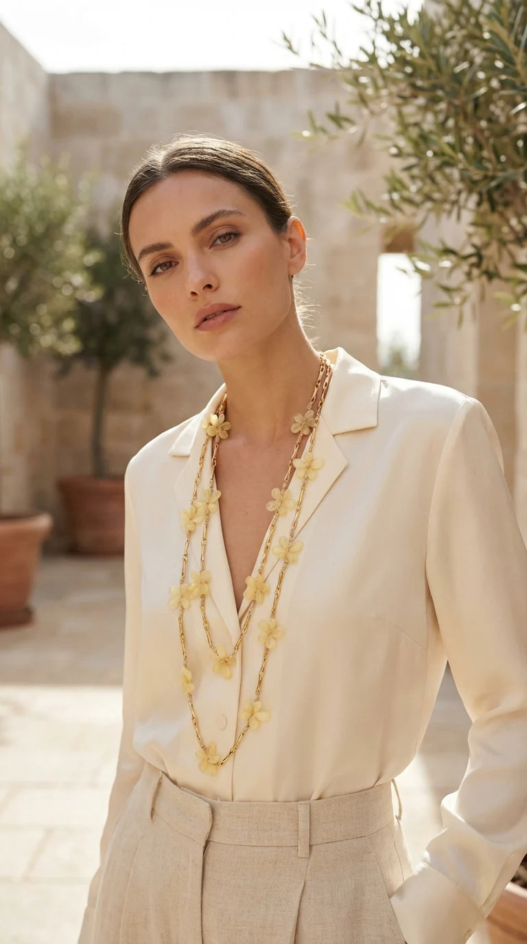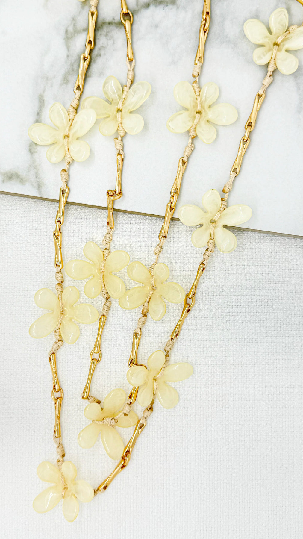 Long double layer gold and cream resin flower necklace