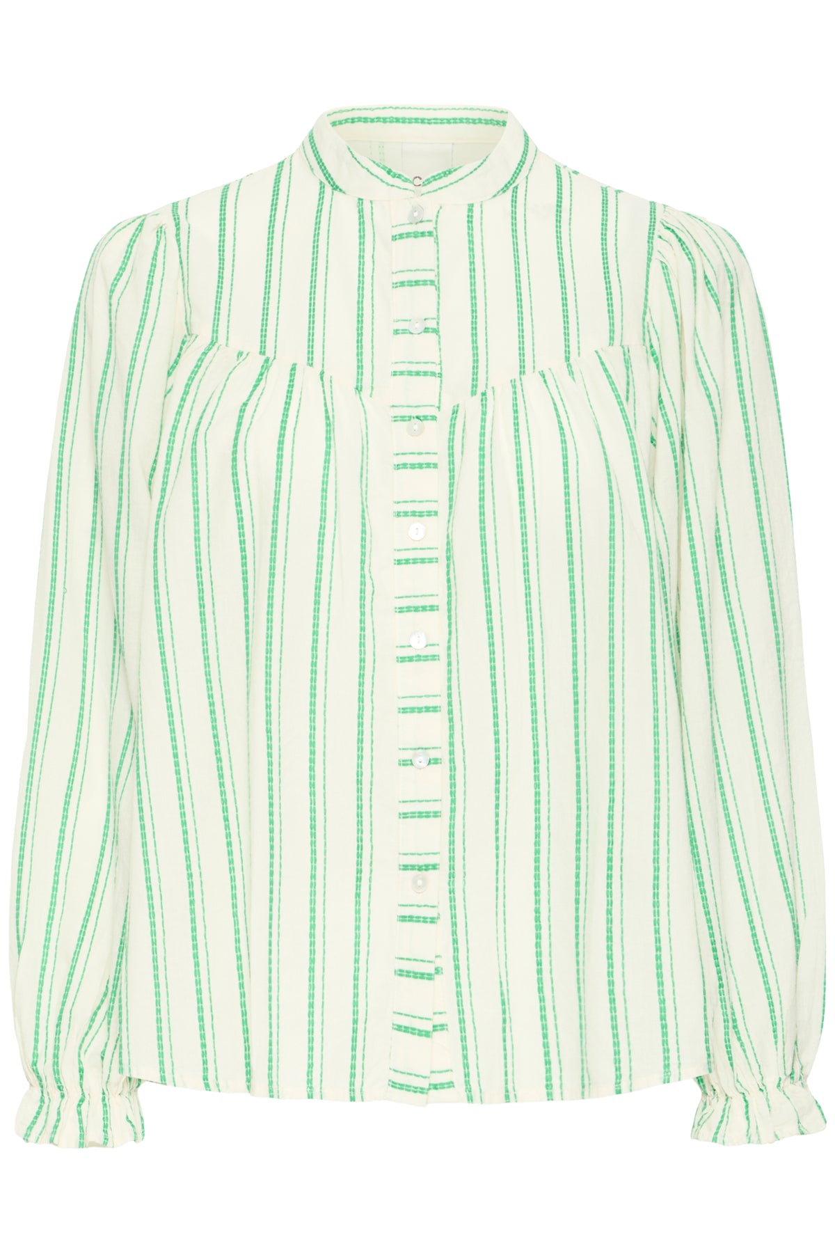 The Ichi IhJovil Shirt is made from 100% cotton. It offers a breathable and comfortable fit. The fresh green colour and graphic design add a modern touch, while the regular fit creates an easy, flattering shape suitable for both casual and smarter outfits.