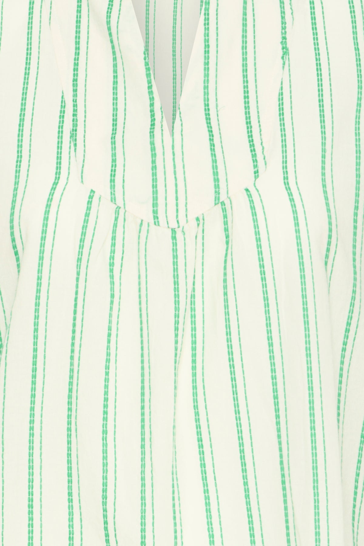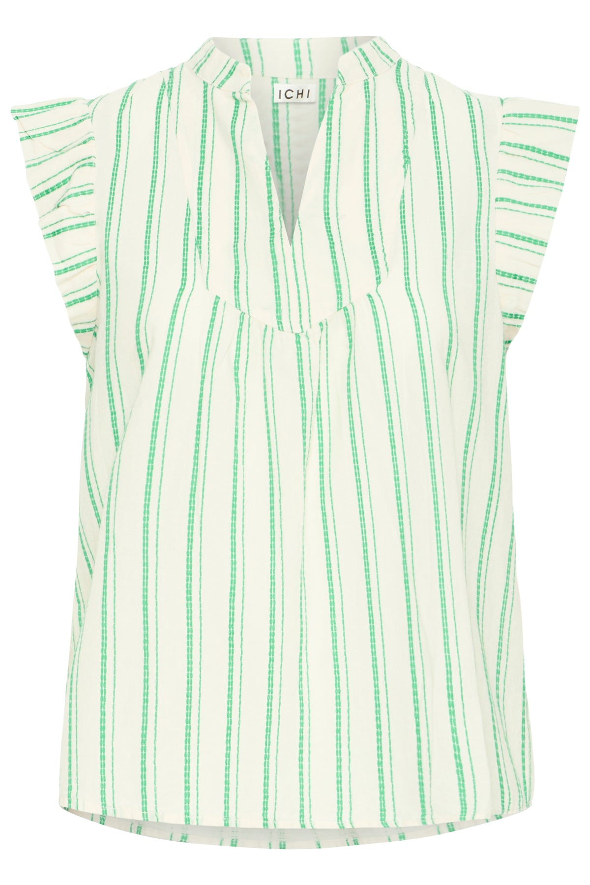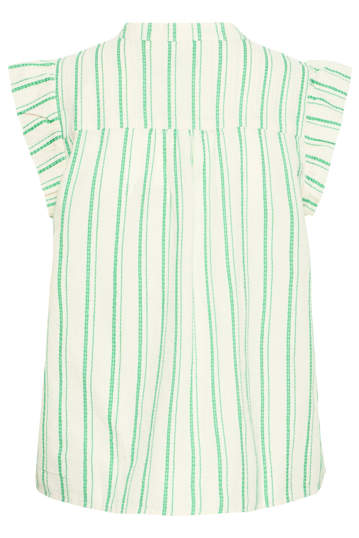 This sleeveless cotton top features pin stripe embroidery, a v-neckline and the frill detailing at the armholes adds a touch of elegance and movement to this versatile piece. The soft cotton fabric offers breathability and style, making it cool and comfortable to wear.