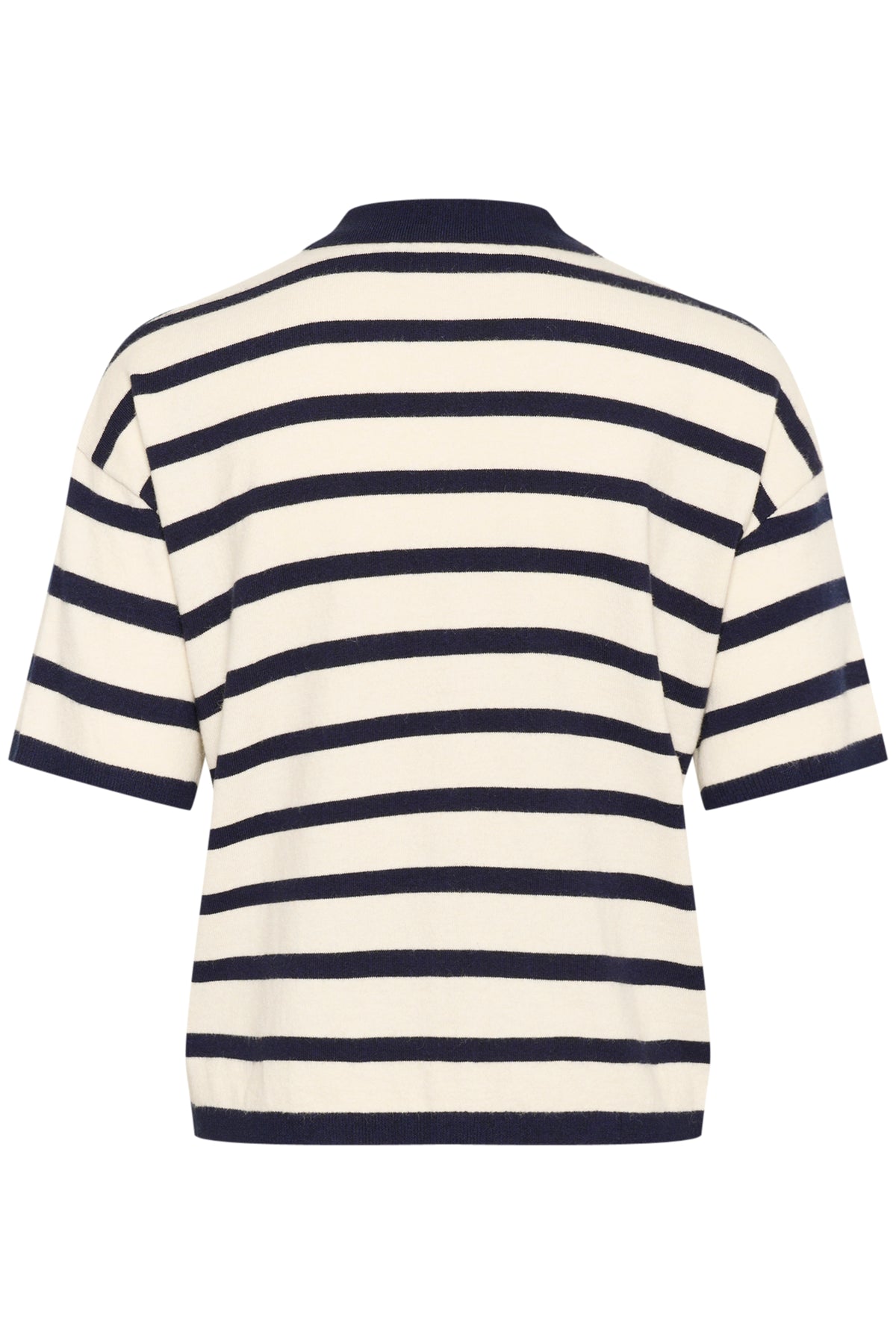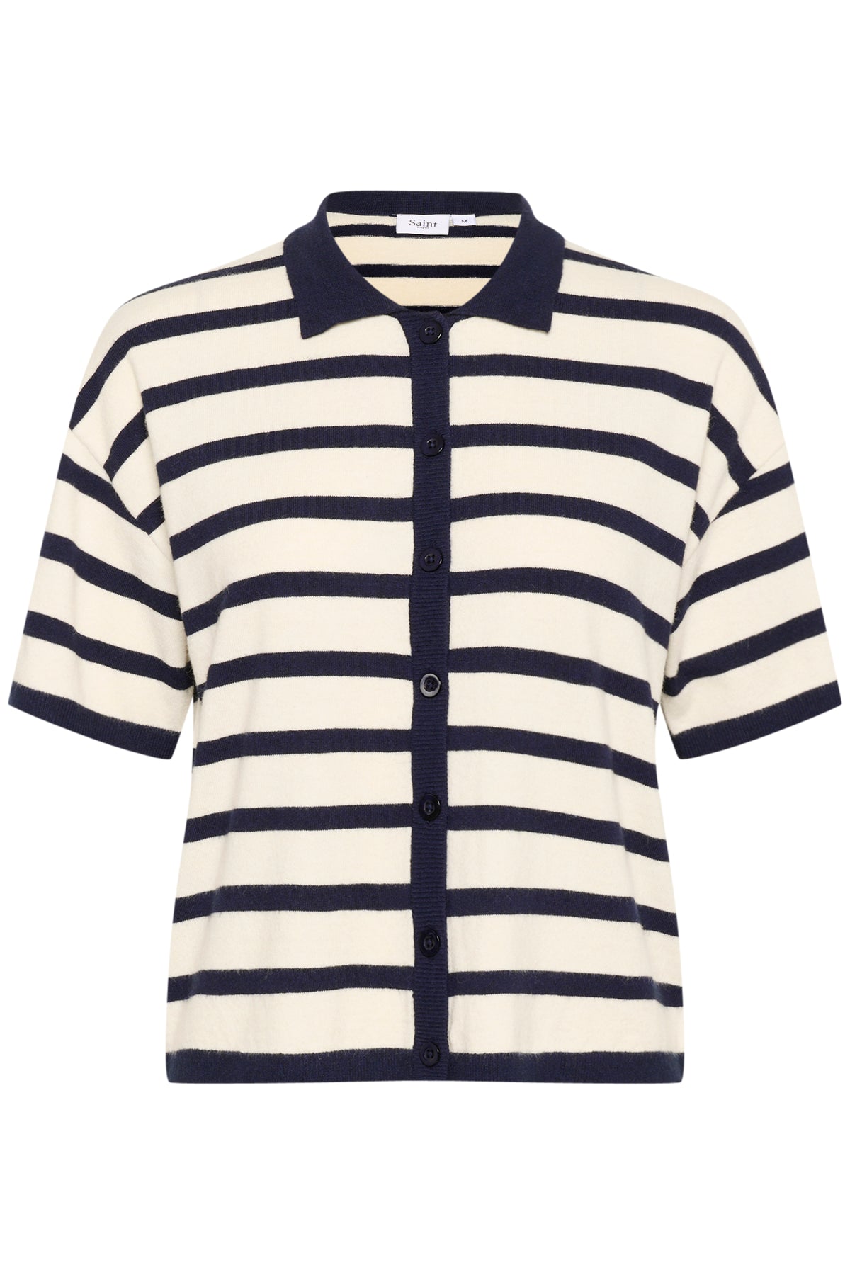 Saint Tropez Likam Striped Polo Cardigan | Winter White Nightsky Stripe