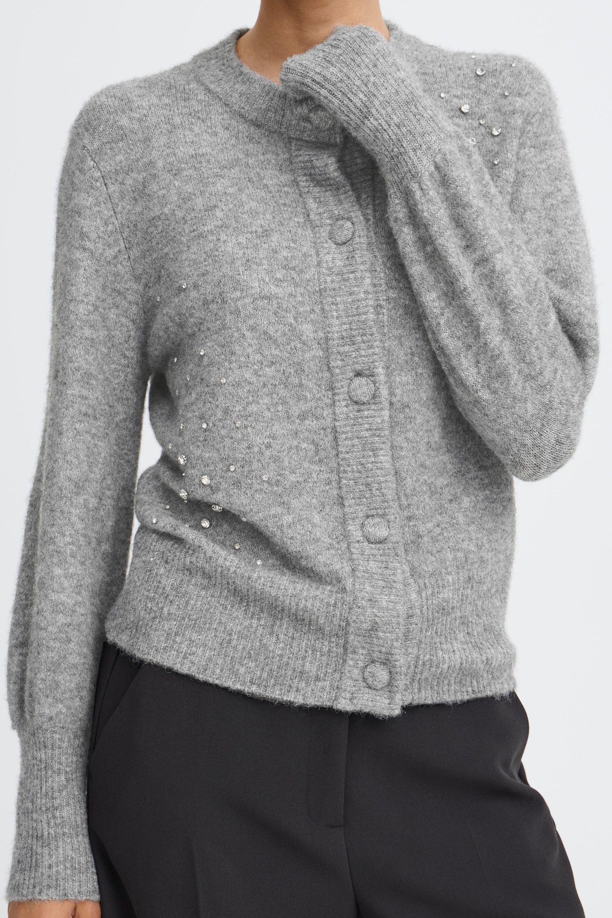 Byomea Rhinestone Cardigan | Mid Grey Melange