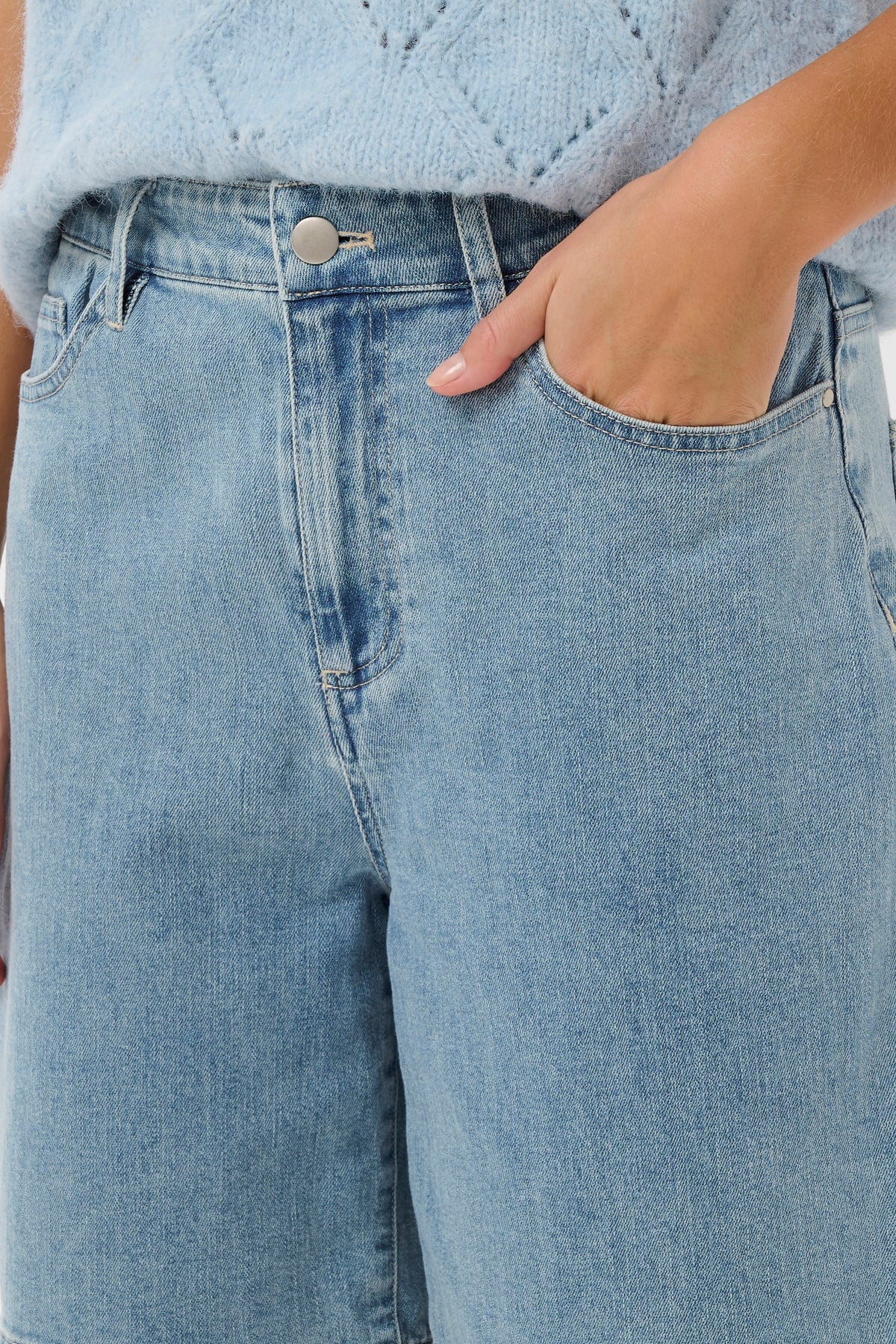 • Light blue denim with a soft, worn-in feel