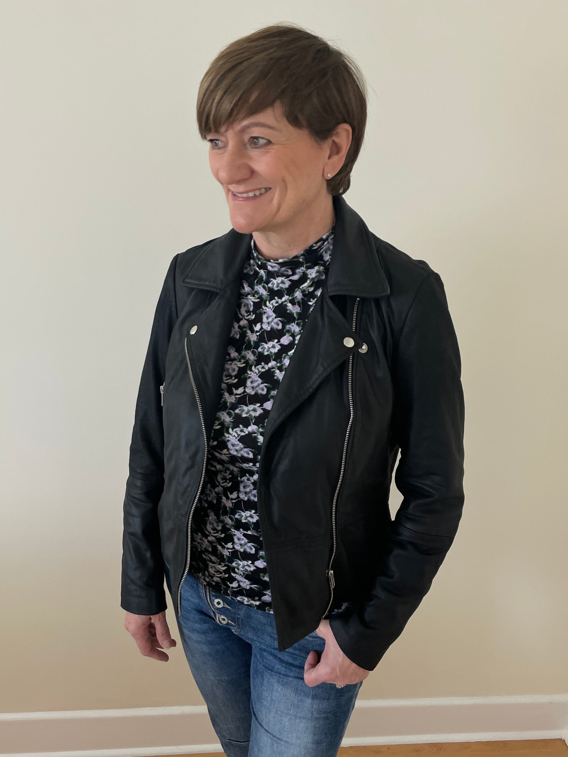A leather jacket is a staple in every wardrobe - it is such a versatile item and you can call on it for so many occasions. This soft, black leather jacket by YAS is 100% leather and features studded notch lapels, a zip fastening and fabric ribbed side arm panels for comfort. It has a zip up pocket on the right side of the jacket and the leather supple and fitted. You can dress it up over a dress or blouse of dress down with jeans - the possibilities are endless! It is the most supple and lightweight leather jacket I have worn - I love it!